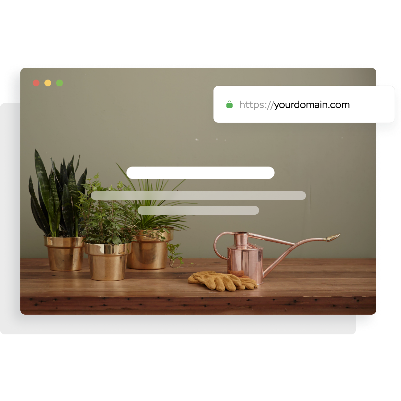 Ενισχύστε το brand σας με ένα προσαρμοσμένο όνομα χώρου. Χρησιμοποιήστε αυτό που ήδη έχετε ή καταχωρίστε ένα νέο μαζί μας. Όλα τα ονόματα χώρου αποκτούν αυτόματα HTTPS, δωρεάν.