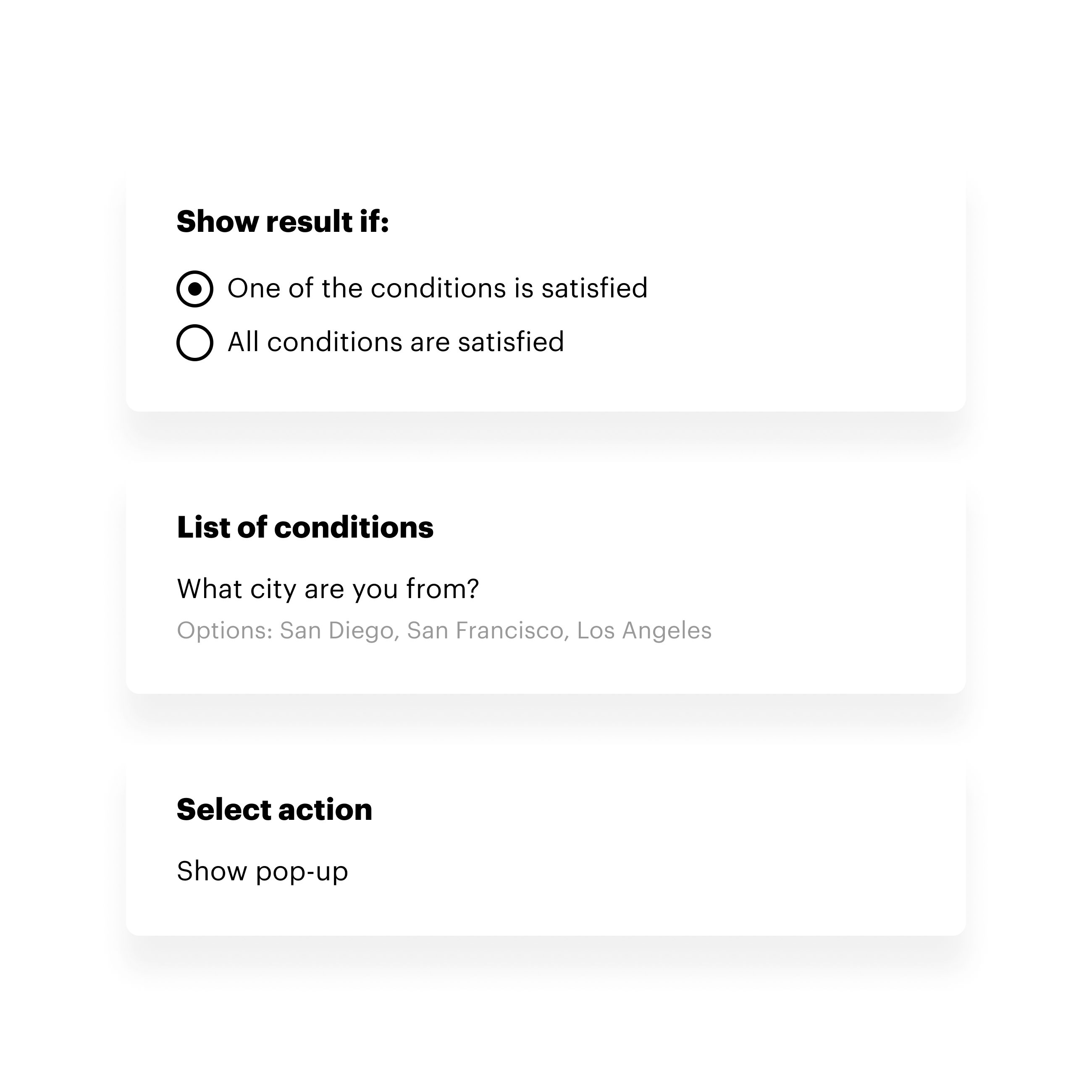 Προσαρμόστε τα κουίζ για κάθε επισκέπτη: κάντε ερωτήσεις ανάλογα με τις απαντήσεις που δίνονται. Οι επισκέπτες δεν θα χρειάζεται να απαντούν σε άσχετες ερωτήσεις και εσείς θα μάθετε πιο λεπτομερείς πληροφορίες.